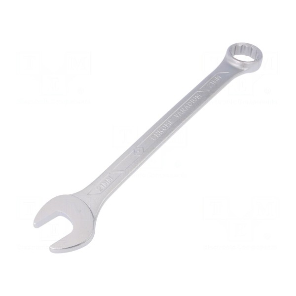 Klucz płasko-oczkowy dwustronny o rozmiarze 21 mm wykonany ze stali chromowo-wanadowej. Narzędzie charakteryzuje się długością całkowitą wynoszącą 250 mm oraz chromowaną powierzchnią chroniącą przed korozją.