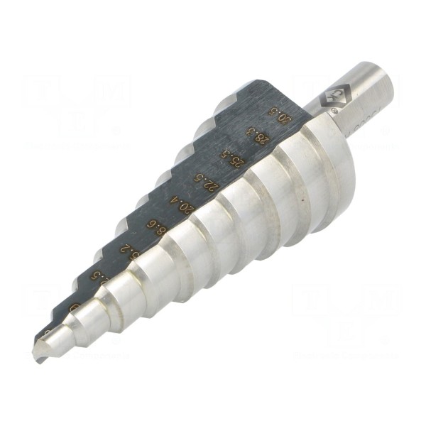 Wiertło stopniowe stożkowe o zakresie średnic od 6 do 30,5 mm przeznaczone jest do obróbki cienkich blach. Narzędzie wykonano ze stali szybkotnącej HSS, co wpływa na jego trwałość podczas wiercenia w metalu.