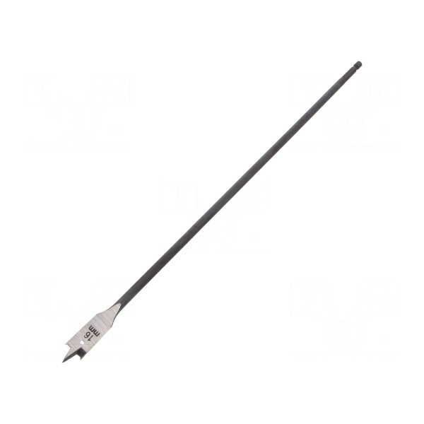 Wiertło płaskie do drewna o średnicy 16mm przeznaczone jest do wykonywania otworów o dużej głębokości. Całkowita długość narzędzia wynosi 400mm, co umożliwia przewiercanie elementów o znacznej grubości.