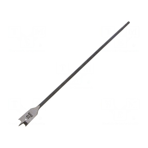 Wiertło przeznaczone do obróbki drewna wykonane jest ze stali szybkotnącej HSS. Narzędzie posiada średnicę 20 mm oraz długość całkowitą wynoszącą 400 mm.