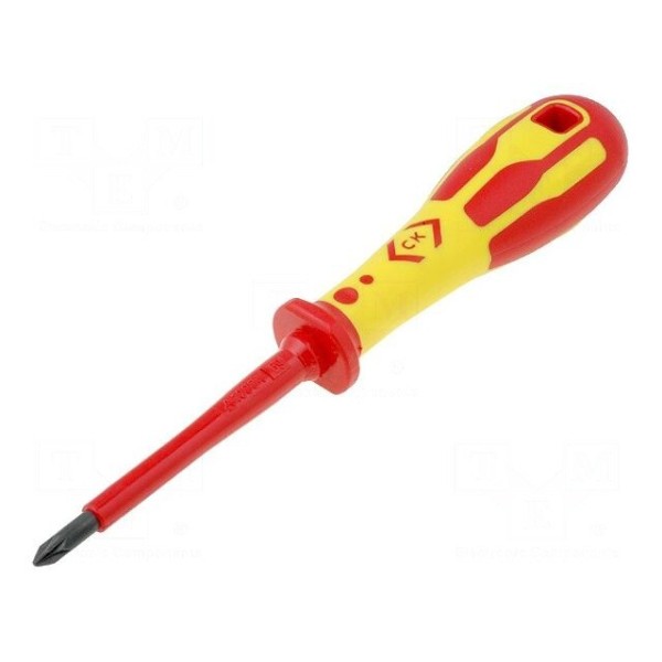 Wkrętak izolowany C.K T49143-1 jest narzędziem typu Pozidriv w rozmiarze PZ1. Ostrze o długości 95mm zostało wykonane ze stali, poddane hartowaniu oraz wyposażone w czernioną końcówkę, co zwiększa jego odporność na zużycie w warunkach pracy elektrycznej.