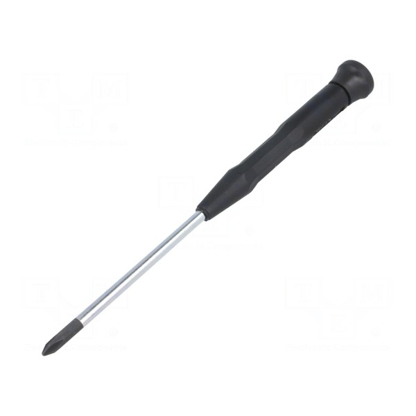 Wkrętak precyzyjny typu Phillips o rozmiarze grota PH1 wykonany został ze stali chromowo-wanadowo-molibdenowej. Konstrukcja narzędzia spełnia wymogi wersji ESD, co pozwala na bezpieczne wykorzystanie podczas prac przy komponentach wrażliwych na wyładowania elektrostatyczne.