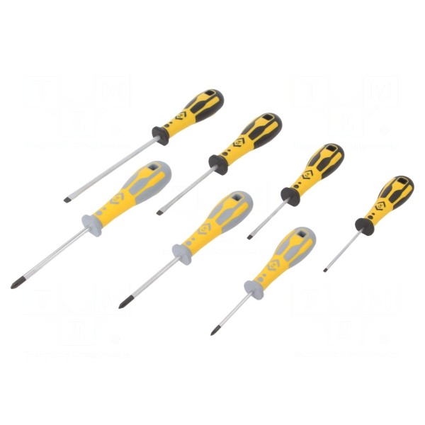 Zestaw 7 wkrętaków uniwersalnych z grotami Phillips i płaskimi
