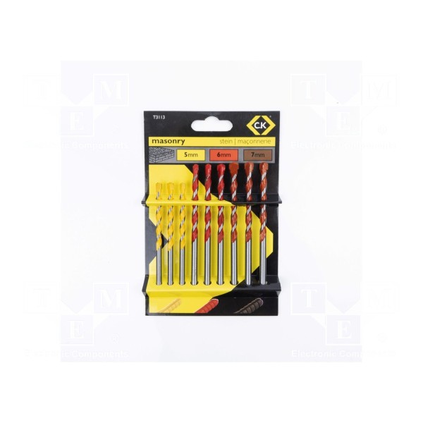 Zestaw wierteł do elektronarzędzi przeznaczony do obróbki betonu oraz kamienia. W skład opakowania wchodzi 9 sztuk narzędzi o konstrukcji przystosowanej do pracy w twardych materiałach budowlanych.