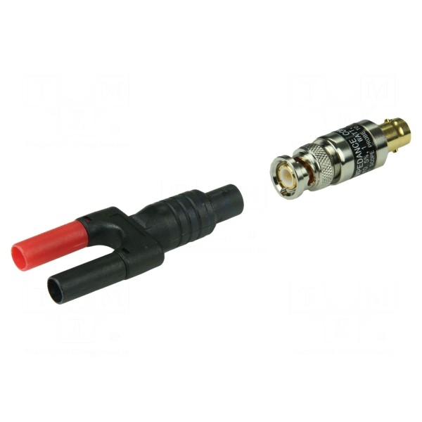Adapter przeznaczony do łączenia sygnałów pomiarowych wyposażony w złącze BNC oraz dwa wtyki bananowe 4mm. Urządzenie charakteryzuje się impedancją wynoszącą 50Ω.