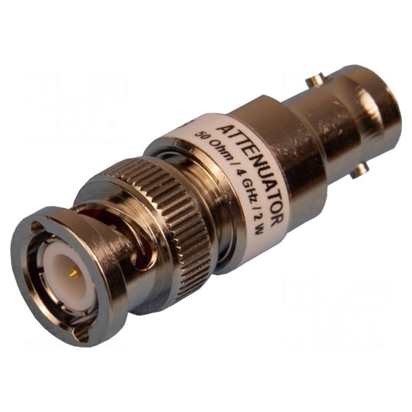 Element wyposażony jest w złącza BNC wtyk oraz BNC gniazdo, co umożliwia wpięcie w tor sygnałowy. Całkowita długość konstrukcji wynosi 42,6mm.