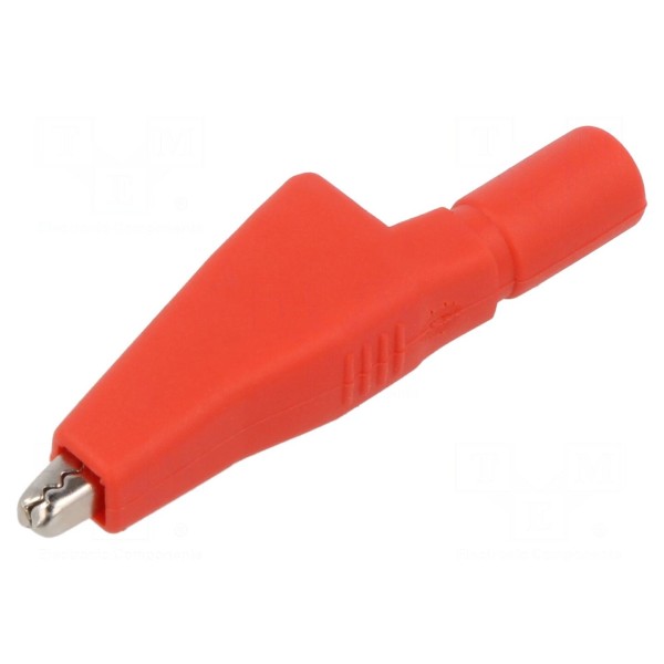 Zacisk krokodylkowy 10A, zakres chwytania 7,9mm, kolor czerwony