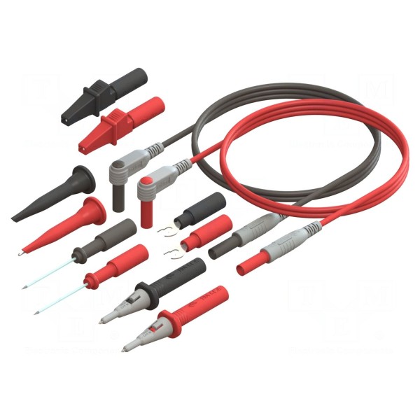 Zestaw akcesoriów pomiarowych przeznaczony do współpracy z multimetrami. Elementy kompletu charakteryzują się prądem znamionowym wynoszącym 3A, 5A oraz 10A, co umożliwia wykonywanie pomiarów w różnych warunkach roboczych. Zestaw występuje w kolorystyce czarnej oraz czerwonej.