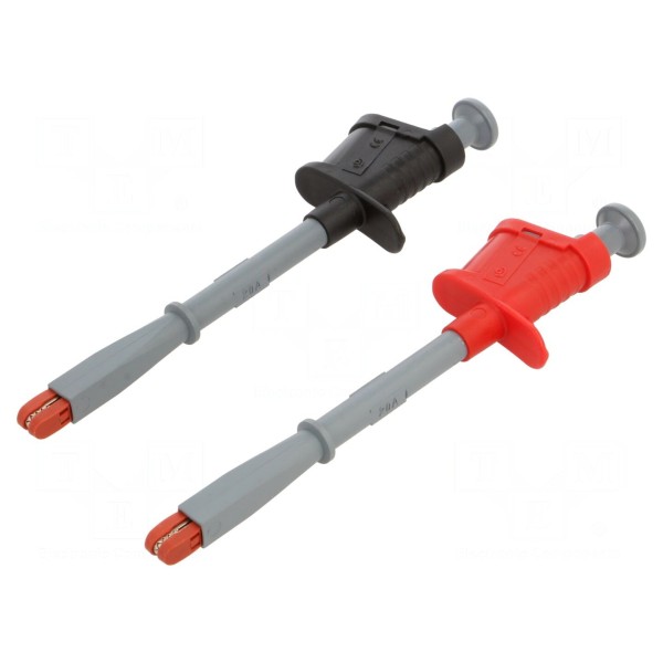 Akcesorium pomiarowe w formie chwytaka krokodylkowego przeznaczone jest do wykonywania połączeń w układach elektrycznych o prądzie znamionowym do 20A. Zestaw zawiera dwa chwytaki w kolorze czarnym oraz czerwonym.