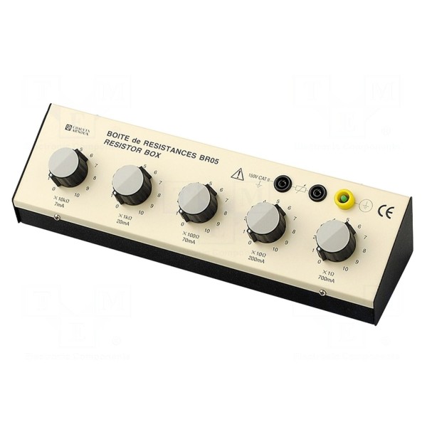 Dekada rezystancyjna marki Chauvin Arnoux służy do precyzyjnego ustawiania wartości rezystancji w obwodach elektrycznych. Urządzenie oferuje zakres wartości od 100kΩ do 1000kΩ, podzielony na 11 oddzielnych zakresów, co zapewnia elastyczność w zastosowaniach laboratoryjnych i pomiarowych.