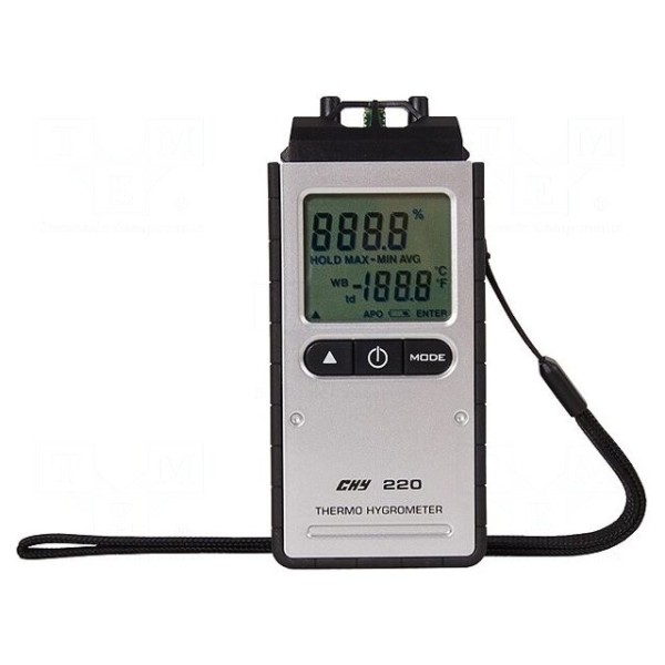 Termohigrometr 101355 jest przyrządem przeznaczonym do monitorowania warunków środowiskowych, umożliwiającym pomiar temperatury, wilgotności oraz punktu rosy. Urządzenie charakteryzuje się rozdzielczością pomiaru temperatury na poziomie 0,1°C oraz dokładnością ±0,5°C w zakresie temperatur od -20 do 60°C. Pomiar wilgotności realizowany jest w pełnym zakresie 0-100% RH z dokładnością ±2,5%.