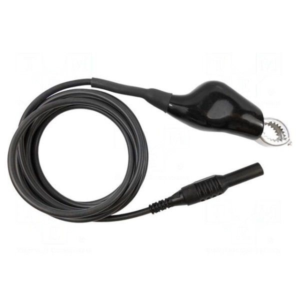 Konstrukcja przewodu wyposażona jest w wtyk bananowy 4mm oraz zacisk krokodylkowy, co umożliwia szybkie podłączenie do punktów pomiarowych lub uziemiających. Zastosowana izolacja wykonana z silikonu zapewnia elastyczność oraz odporność na warunki pracy. Przewód dostępny jest w kolorze czarnym.