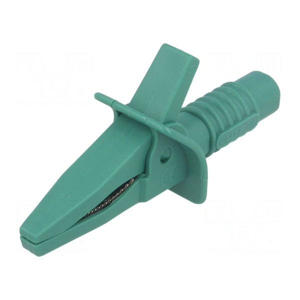 Zacisk krokodylkowy przeznaczony jest do wykonywania połączeń pomiarowych w układach elektrycznych. Element charakteryzuje się prądem znamionowym wynoszącym 10A oraz możliwością chwytania przewodów i końcówek o średnicy maksymalnej do 25mm.