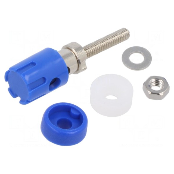 Konstrukcja umożliwia montaż na panelu przy użyciu zacisku sprężynowego. Element wykończony jest w kolorze niebieskim.