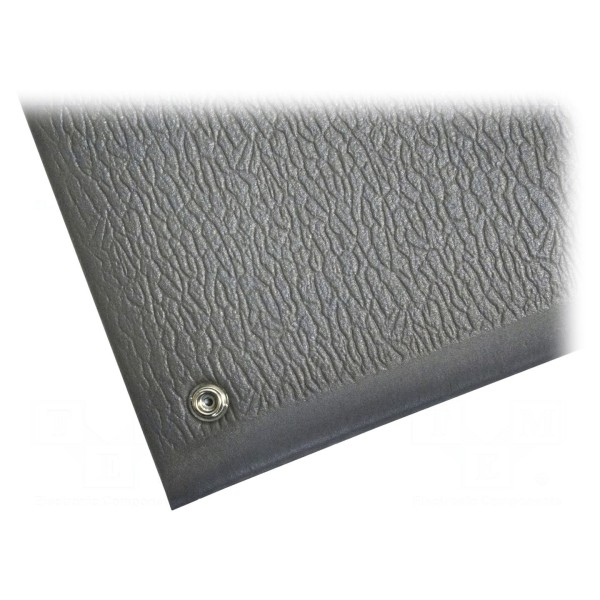 Konstrukcja maty wyposażona została w dwa zatrzaski męskie o średnicy 10mm umożliwiające przyłączenie do instalacji uziemiającej. Materiał PVC wykazuje odporność na działanie większości alkoholi, kwasów, olejów, rozpuszczalników oraz smarów i innych związków chemicznych.