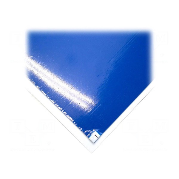 Konstrukcja maty jest samoprzylepna i składa się z 60 arkuszy, co umożliwia skuteczne usuwanie nieczystości z obuwia. Mata wykonana jest w kolorze niebieskim.