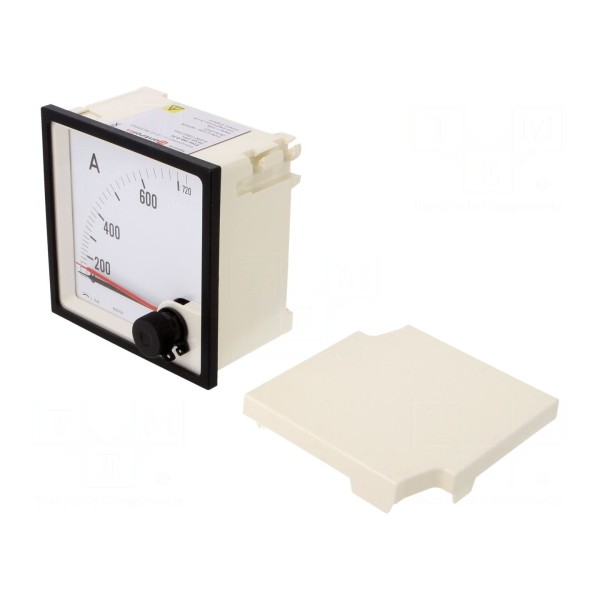 Ten analogowy amperomierz montażowy przeznaczony jest do pomiaru prądu przemiennego AC w zakresie od 0 do 600A oraz 960A. Urządzenie wykorzystuje metodę pomiaru pośredniego z przekładnikiem prądowym o prądzie wejściowym 5A lub 6A i pracuje w zakresie częstotliwości 50–60Hz. Miernik charakteryzuje się obsługą funkcji True RMS, co pozwala na precyzyjną ocenę wartości skutecznej prądu.