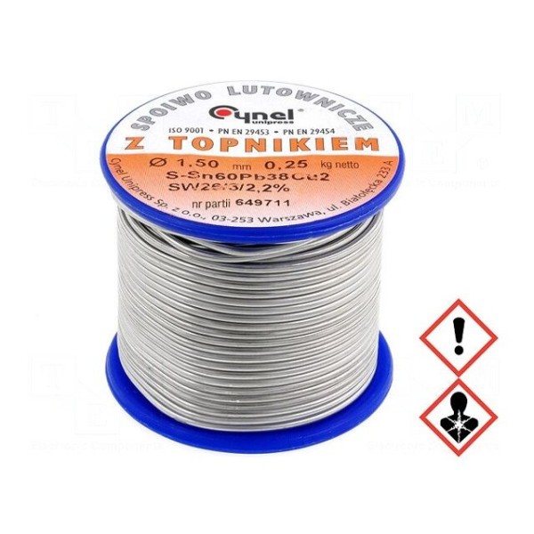 Cyna Sn60Pb38Cu2 ⌀1,5mm, 0,25kg