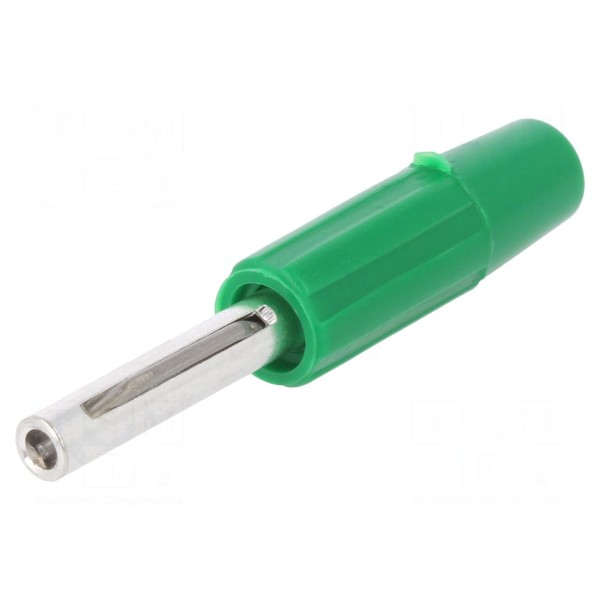 Złącze bananowe 4mm, wtyk, 10A, 60V DC, zielony