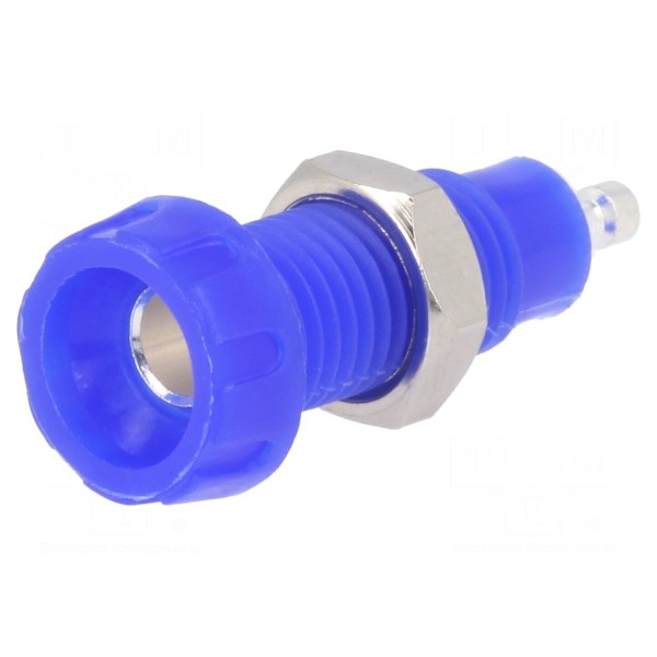 Gniazdo bananowe 4mm przeznaczone jest do montażu poprzez lutowanie. Element został wykonany z mosiądzu z niklowaną powłoką styków, co zapewnia rezystancję styku na poziomie maksymalnie 10mΩ.