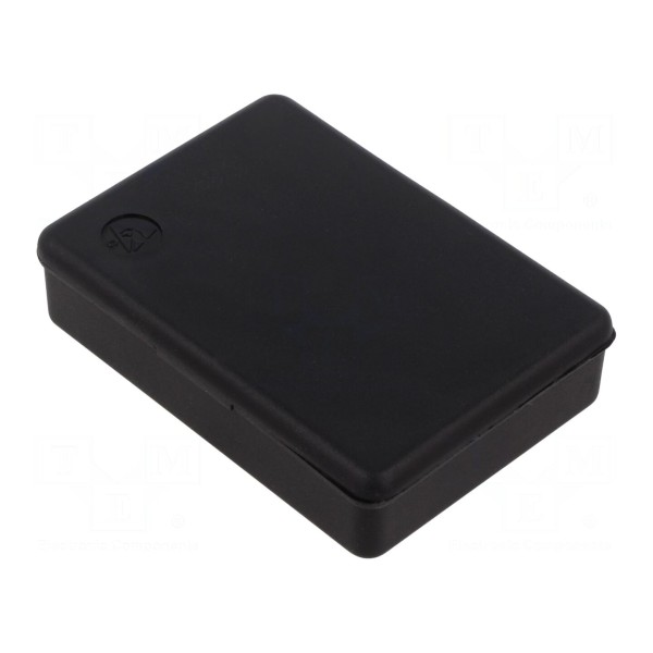 Produkt charakteryzuje się czarnym kolorem oraz wymiarami wewnętrznymi wynoszącymi 75x51x14mm. Konstrukcja pojemnika jest zgodna z wymogami normy IEC 61340-5-1, co potwierdza jego przeznaczenie do pracy w środowiskach wymagających zabezpieczeń przed ładunkami elektrostatycznymi.