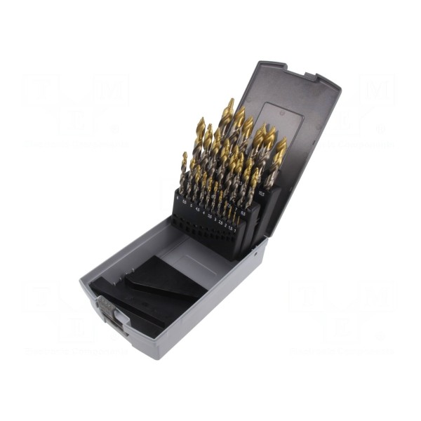 Zakres średnic wierteł zawartych w komplecie wynosi od 1mm do 13mm ze skokiem co 0,5mm. Pozwala to na szerokie wykorzystanie zestawu przy obróbce stali, stali stopowej, aluminium oraz stopów miedzi. Komplet dostarczany jest w kasecie z tworzywa sztucznego, która umożliwia uporządkowane przechowywanie elementów i łatwy dostęp do poszczególnych rozmiarów.