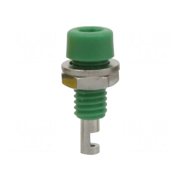 Gniazdo bananowe o średnicy 2mm przeznaczone jest do połączeń laboratoryjnych. Element charakteryzuje się prądem znamionowym wynoszącym 10A oraz izolowaną konstrukcją, która podnosi bezpieczeństwo użytkowania w układach elektronicznych.