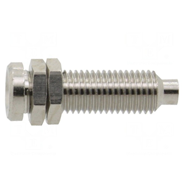 Złącze laboratoryjne typu bananowego o średnicy 4mm występuje w wersji gniazda. Element przeznaczony jest do montażu na panelu poprzez przykręcenie. Konstrukcja wymaga wykonania otworu montażowego o średnicy 8mm. Produkt znajduje zastosowanie w układach pomiarowych oraz laboratoryjnych.