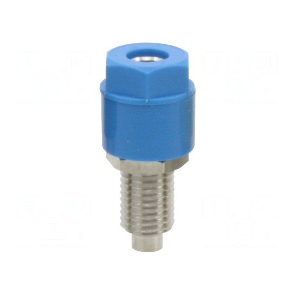 Styki wykonane zostały z mosiądzu i poddane procesowi niklowania, co zapewnia parametry przewodzenia. Komponent wymaga wykonania otworu montażowego o średnicy 8mm i występuje w kolorze niebieskim.