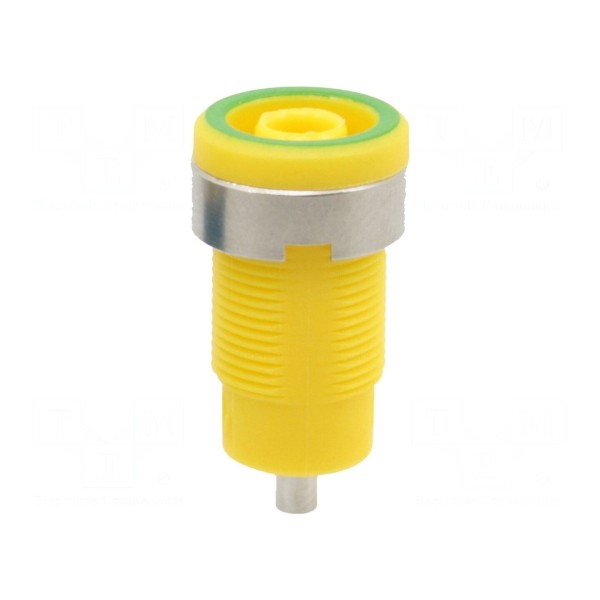 Gniazdo bananowe o średnicy 4mm przeznaczone jest do montażu lutowanego w urządzeniach pomiarowych i laboratoryjnych. Element charakteryzuje się prądem znamionowym wynoszącym 25A.