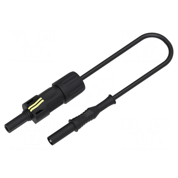 Adapter testowy ELECTRO-PJP PVF2317AUNI-100N jest przeznaczony do zastosowań w instalacjach fotowoltaicznych. Przewód o długości 1m wyposażony został w złącza typu wtyk banan 4mm oraz gniazdo MC4 żeńskie, co umożliwia bezpośrednie połączenie z kompatybilnymi komponentami systemów PV.