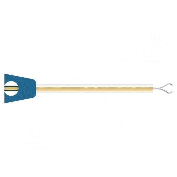 Element umożliwia chwytanie przewodów o średnicy maksymalnej 0,6mm. Konstrukcja akcesorium została wyposażona w gniazdo o rozmiarze 0,8mm, a jego całkowita długość wynosi 42,6mm. Produkt występuje w kolorze białym.