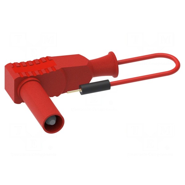 Element wyposażono w złącze typu wtyk 0,8 mm oraz kątowy wtyk bananowy 4 mm. Całość wykonana jest w kolorze czerwonym.