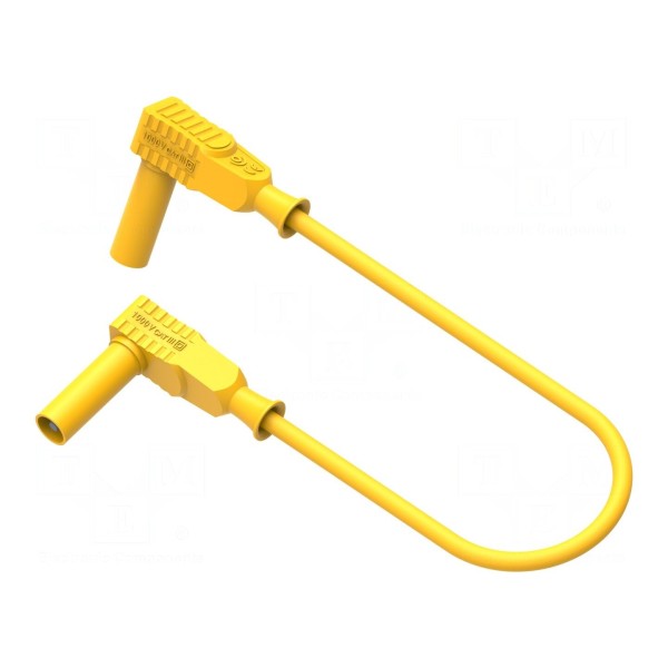 Przewód pomiarowy o długości 0,5 m został zaprojektowany do współpracy z urządzeniami wyposażonymi w gniazda bananowe 4 mm. Wyposażony jest w kątowe wtyki izolowane umieszczone po obu stronach przewodu. Konstrukcja bazuje na przewodzie o przekroju 0,75 mm² z izolacją wykonaną z PVC.