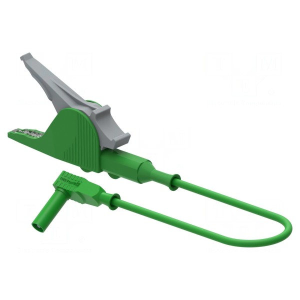 Zastosowana izolacja z silikonu chroni przewód o przekroju 2,5 mm² przed uszkodzeniami mechanicznymi oraz wysoką temperaturą. Złącza posiadają izolowaną konstrukcję, co poprawia bezpieczeństwo obsługi. Komponent jest zgodny z kategorią bezpieczeństwa CAT III 1000 V, co umożliwia wykorzystanie go w instalacjach elektrycznych zgodnych z tą specyfikacją. Produkt dostępny jest w kolorze zielonym.