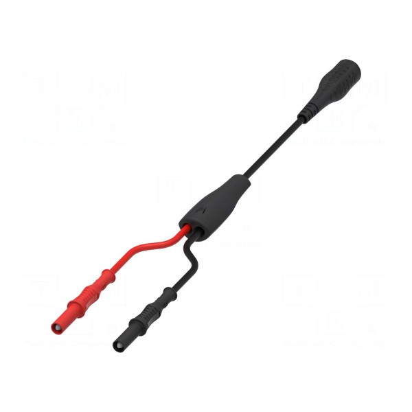Parametry techniczne urządzenia obejmują prąd znamionowy na poziomie 3A oraz napięcie znamionowe 1kV. Przewód w kolorze czarnym jest zgodny z normą EN 61010 oraz spełnia wymogi kategorii bezpieczeństwa CAT II 1000V. Konstrukcja przystosowana jest do pracy w wymagających środowiskach laboratoryjnych i serwisowych.