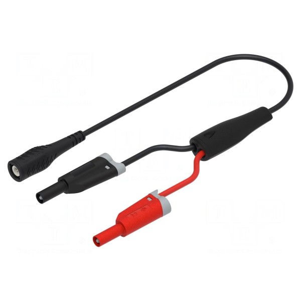 Przewód pomiarowy BNC – 2x wtyk bananowy 4mm, 50Ω