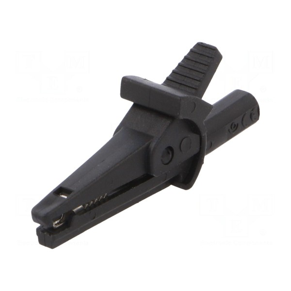 Zacisk krokodylkowy przeznaczony jest do przewodzenia prądu znamionowego o wartości 10A przy napięciu maksymalnym 600V DC. Element posiada gniazdo w rozmiarze 4mm, co umożliwia współpracę z wieloma standardowymi przewodami pomiarowymi.