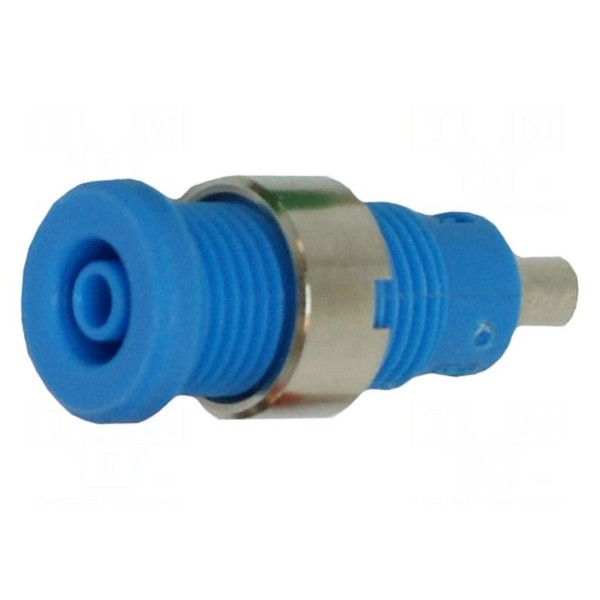 Złącze laboratoryjne w wersji izolowanej typu gniazdo bananowe 2mm charakteryzuje się niebieską kolorystyką obudowy. Styki elementu zostały poddane procesowi niklowania, co wpływa na ich parametry eksploatacyjne.