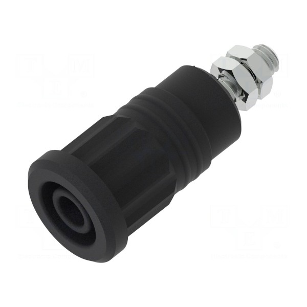 Złącze bananowe 4mm w wersji izolowanej przeznaczone jest do montażu na panelu. Element charakteryzuje się napięciem znamionowym 1kV oraz prądem znamionowym 36A, spełniając wymagania normy bezpieczeństwa CAT III 1000V.