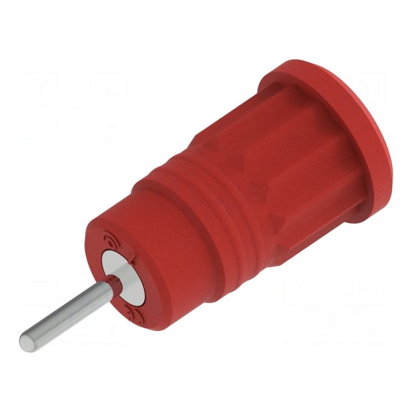 Styki wykonano z mosiądzu, który został poddany procesowi niklowania w celu poprawy parametrów połączeniowych. Montaż złącza odbywa się poprzez wtyk pin o wymiarach 1,9mm na 11mm. Element dostępny jest w kolorze czerwonym.