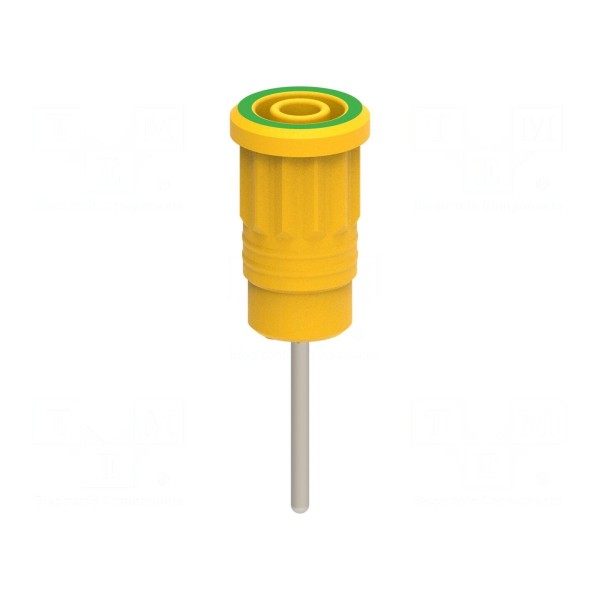 Złącze bananowe 4mm typu gniazdo przeznaczone jest do połączeń laboratoryjnych. Element charakteryzuje się prądem znamionowym 36A oraz konstrukcją w izolowanej wersji kolorystycznej żółto-zielonej. Styki wykonano z mosiądzu i poddano procesowi niklowania, co zapewnia parametry przewodzenia.
