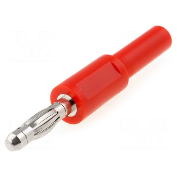 Złącze bananowe 4mm, wtyk, prąd znamionowy 10A, czerwone