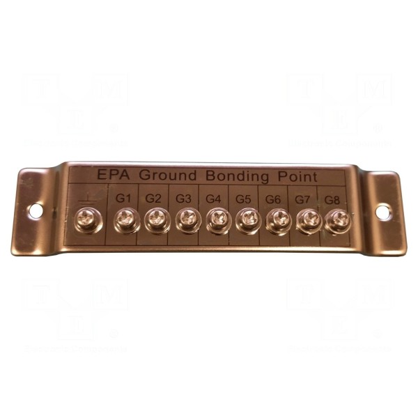 Konstrukcja elementu wyposażona jest w otwory montażowe oraz śrubę M3 x6, co umożliwia instalację. Produkt znajduje zastosowanie przy podłączaniu mat ESD oraz opasek antystatycznych do uziemienia.