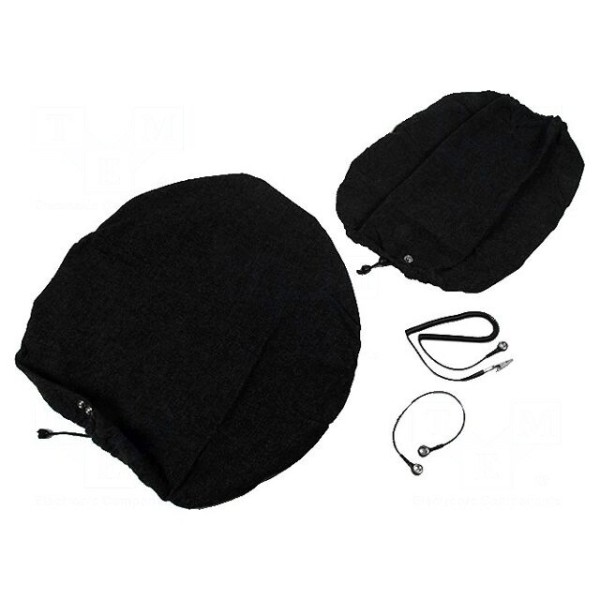 W zestawie znajdują się pokrowiec na oparcie o wymiarach 505x550 mm oraz pokrowiec na siedzisko o wymiarach 650x600 mm. System uziemiający obejmuje przewód o długości 0,3 m z zatrzaskami żeńskimi 10 mm oraz przewód uziemiający, który jest zakończony zatrzaskiem żeńskim 10 mm i końcówką oczkową o średnicy 5,3 mm.