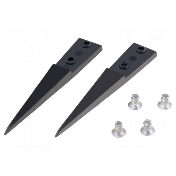 Opakowanie zawiera dwie sztuki końcówek wykonanych z polisiarczku fenylenu. Produkt jest przeznaczony do narzędzia o długości 130 mm z ostrym kształtem ostrzy o szerokości 0,5 mm.