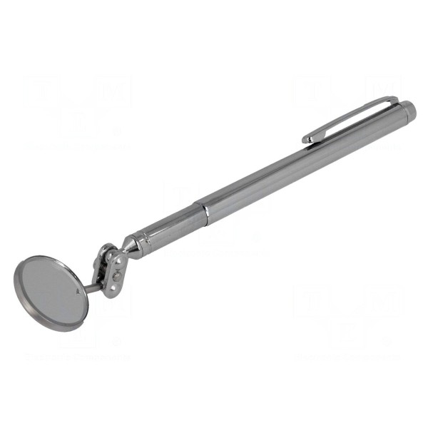 Ramę lusterka wykonano ze stali nierdzewnej o właściwościach antymagnetycznych. Zastosowane przegubowe mocowanie pozwala na swobodne ustawienie kąta nachylenia soczewki w dowolnej pozycji. Narzędzie zostało wyposażone w praktyczny klips, ułatwiający przechowywanie i przenoszenie w kieszeni odzieży roboczej.