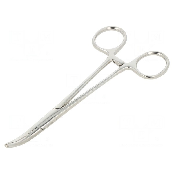 Szczypce o długości 150 mm charakteryzują się zagiętym kształtem końcówki. Konstrukcja narzędzia umożliwia precyzyjne chwytanie elementów w miejscach o utrudnionym dostępie.