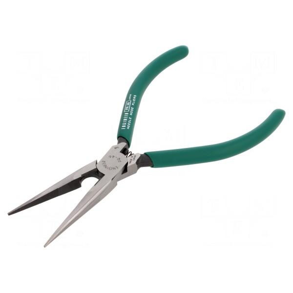 Uniwersalne szczypce półokrągłe przeznaczone do precyzyjnego chwytania oraz cięcia materiałów. Narzędzie zostało wykonane ze stali węglowej S58C, a jego ostrza charakteryzują się twardością na poziomie około 54 HRC. Konstrukcja pozwala na efektywne cięcie drutu stalowego o maksymalnej średnicy 1,2 mm.