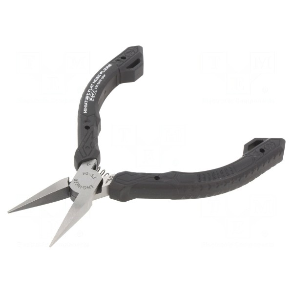 Szczypce płaskie o długości 132 mm wykonane w wersji ESD, przeznaczone do prac wymagających ochrony przed wyładowaniami elektrostatycznymi. Narzędzie charakteryzuje się twardością ostrza na poziomie około 45 HRC.
